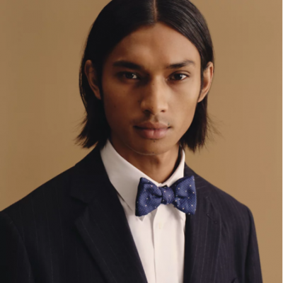あらかじめ結ばれたシルク製蝶ネクタイ(桑蚕シルク100%)。