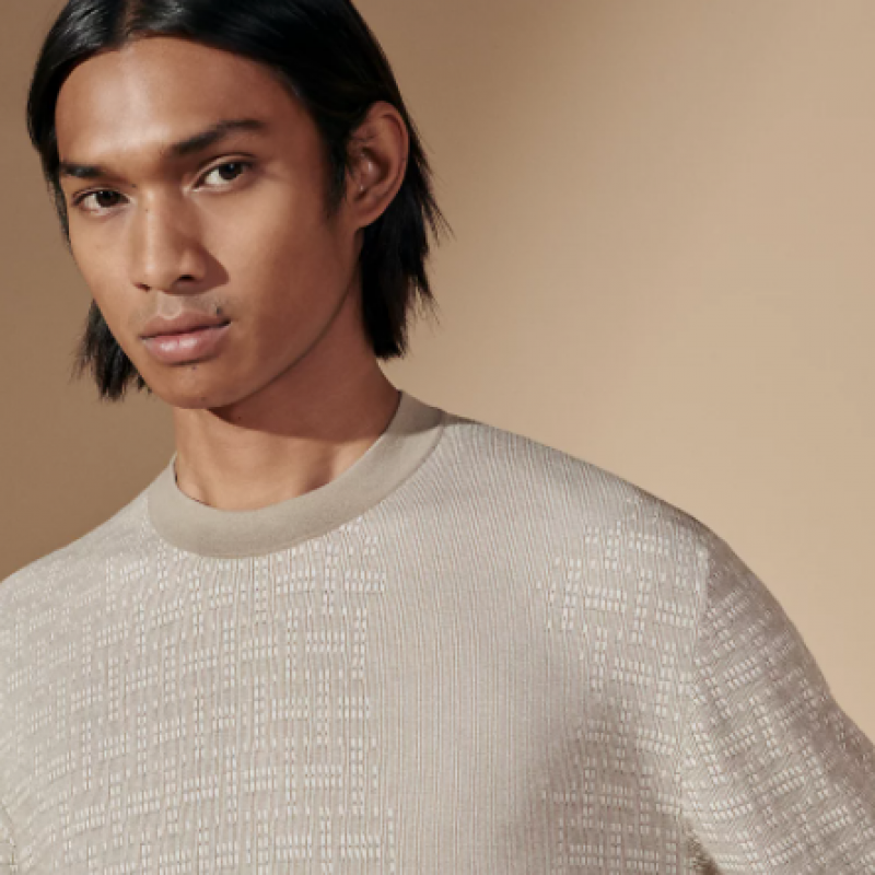 エルメス「ポワンモザイクビコローレ」クルーネックニットセーター