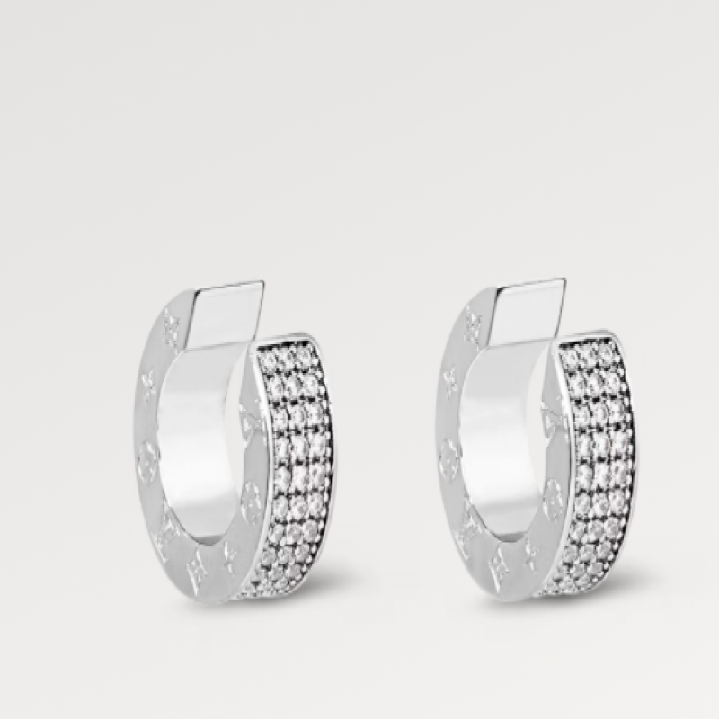 メンズファッションジュエリーコレクションに新たに加わったLVライトクリップオンピアスは、精巧に作られたモノグラム柄のメタルパーツに、きらめく人工クリスタルがふんだんにあしらわれています。ピアス穴を開ける必要がなく、耳にぴったりとフィットするので、どんなスタイルにも印象的なアクセントを加えます。