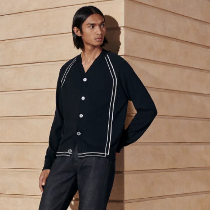 エルメス「リーニュグラフィック」ボタンダウンカーディガン