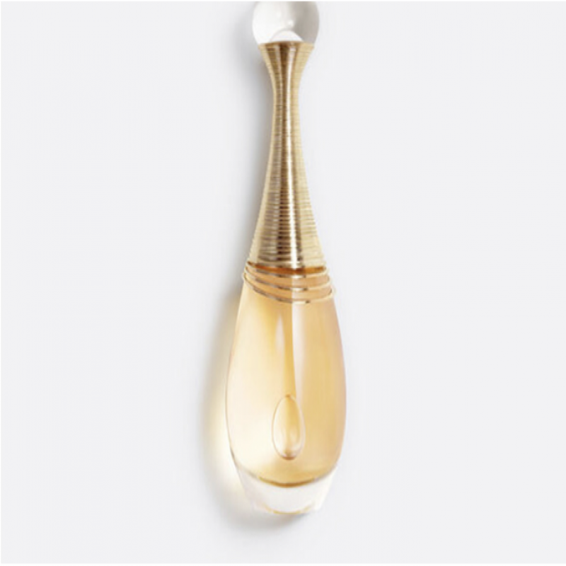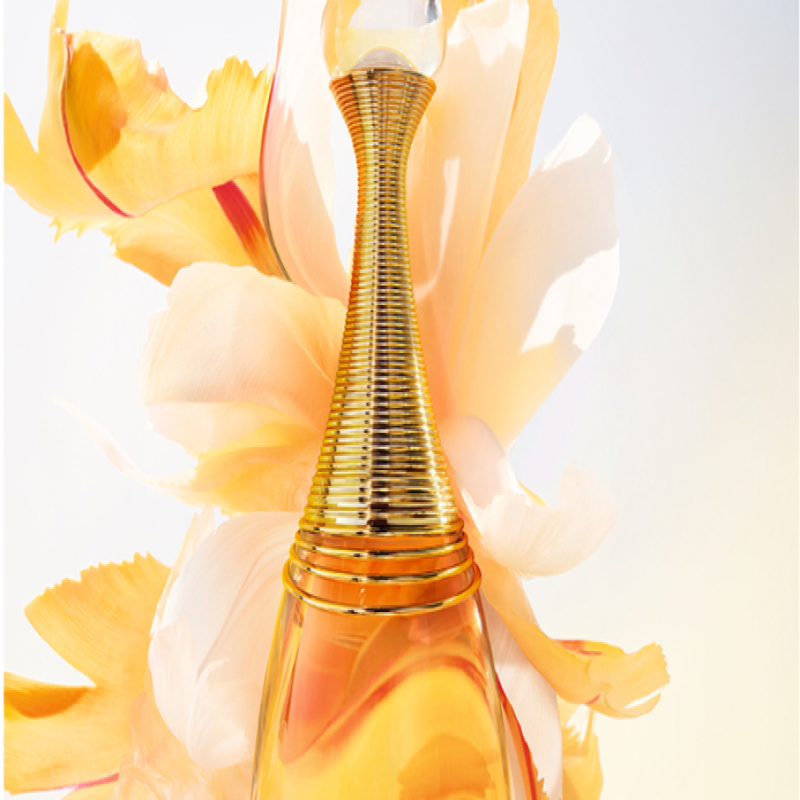 ジャドールは、優雅で洗練されたボトルに収められています。クリスチャン・ディオールが生み出した伝説的な細身のボトルデザインを受け継ぎ、官能的かつエレガントなラインが特徴。繊細なネックにはマサイ族風のチェーンが軽く巻き付けられ、まるで首元に輝く豪華な宝石のようだ。