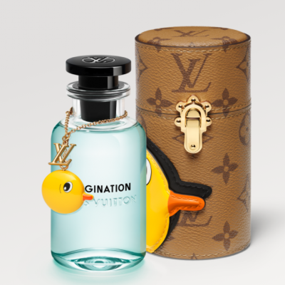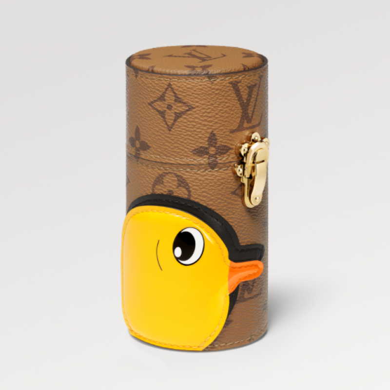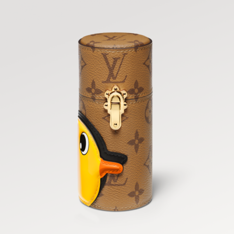 ルイ・ヴィトンは、独創性と卓越した職人技を駆使し、旅行に最適なサイズの香水ボックスを製作しました。大切な香水を安全に保管できるこのボックスは、大量生産された玩具の絵画で知られる中国のアーティスト、孫逸天氏とのコラボレーションによって生まれました。愛らしい漆塗りのアヒルの頭とリバースモノグラムのパターンが、遊び心あふれる魅力を醸し出しています。香水を安全に保管できるだけでなく、旅にちょっとした遊び心を添えてくれます。