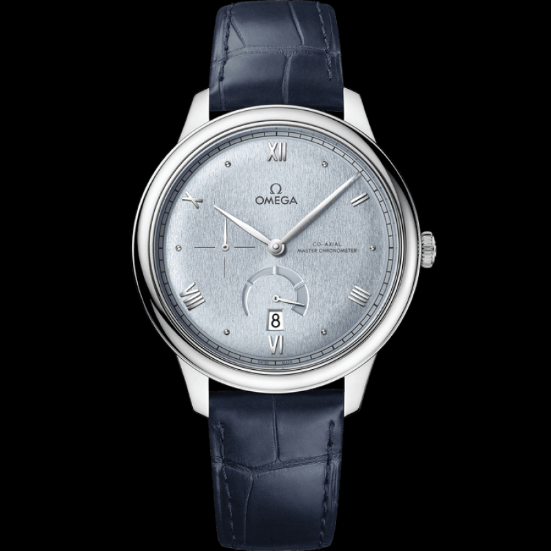 デ・ヴィルシリーズのエレガントな腕時計。41mm、ステンレススチールケース、レザーストラップ付き。