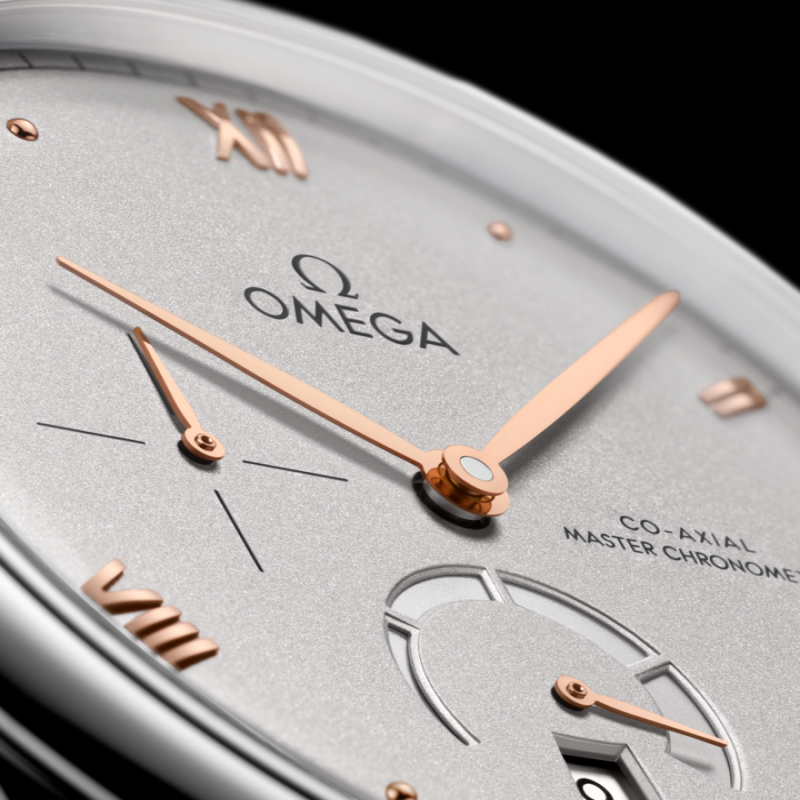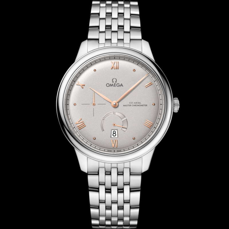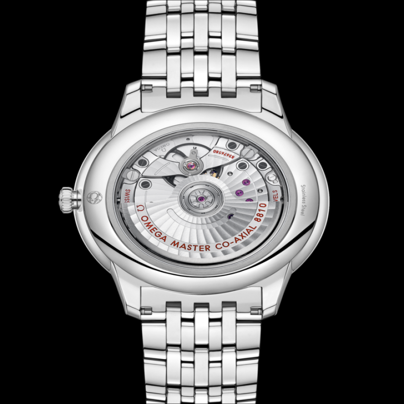 ムーブメントの種類:オメガ キャリバー8810。コーアクシャル脱進機を備えた自動巻きムーブメントで、スイス連邦計量研究所(METAS)によりマスタークロノメーターとして認定されており、最大15,000ガウスの磁場に耐えることができます。日付とパワーリザーブ表示は6時位置、スモールセコンド表示は9時位置にあります。シリコン製ヒゲゼンマイを備えたフリースプラングテンプと両方向自動巻き機構を搭載しています。仕上げはロジウムメッキのアラビア風ジュネーブストライプ模様です。パワーリザーブ:55時間 風防:傷防止サファイアクリスタル(反射防止コーティング付き) 防水性能:3気圧(30メートル/100フィート) ケースと文字盤: ケース:ステンレススチール ケース径:41 mm ラグ幅:19 mm ラグ間隔:47.89 mm 厚さ:10.8 mm 文字盤の色:グレー 総重量(概算):123 g ブレスレット素材:ステンレススチール クラスプタイプ:バタフライクラスプ 機能:耐磁性、COSC認定、日付表示、マスタークロノメーター認定、パワーリザーブ表示、スモールセコンド、シースルーバック
