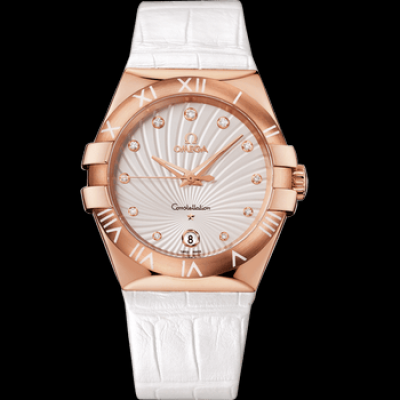 オメガ コンステレーション 35mm、レッドゴールドケース、レザーストラップ。リファレンス番号:123.53.35.60.52.00。クラスプタイプ:バタフライクラスプ。