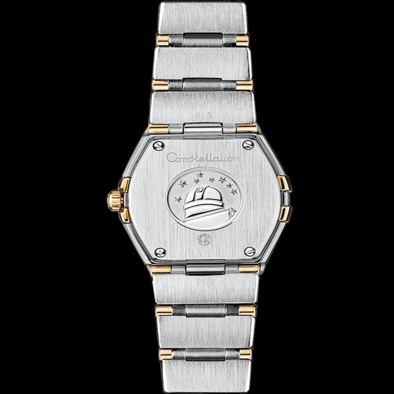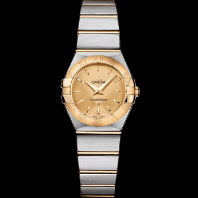 オメガ コンステレーション 24mm、ステンレススチールと18Kイエローゴールドのケースとブレスレット。リファレンス番号:123.20.24.60.08.001。クラスプタイプ:バタフライクラスプ。