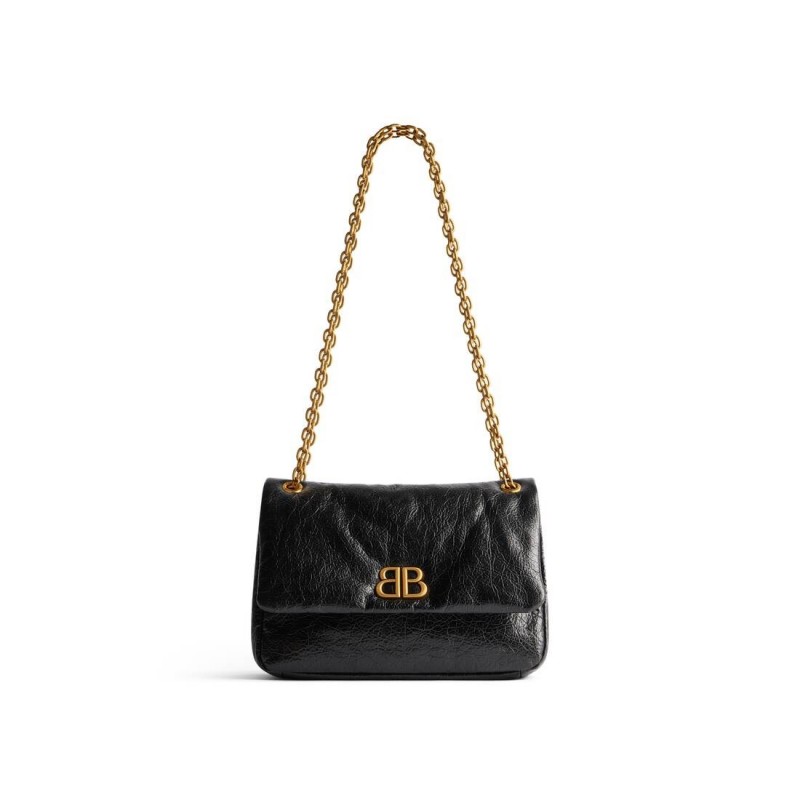 バレンシアガ モナコ ミニバッグ - オールブラック モナコ ブラック ファイングレイン カーフスキン レザー ミニバッグ アンティークゴールドトーン金具
