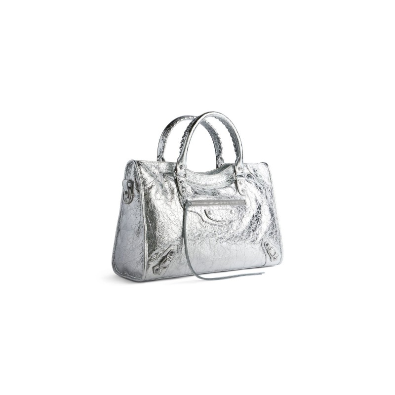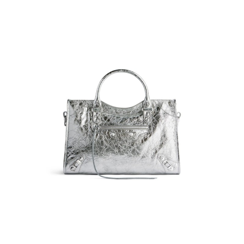 バレンシアガ レディース LE CITY ミディアム シルバーメタル ハンドバッグ