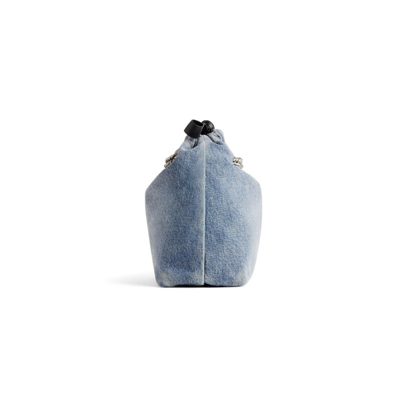 バレンシアガ レディース クラッシュ スモール ブルー デニム バットトートバッグ