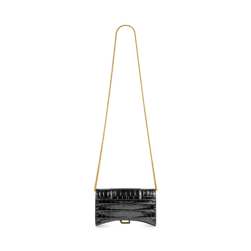 バレンシアガ レディース ブラック クロコダイル型押し チェーン アワーグラス ウォレット