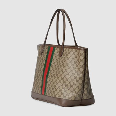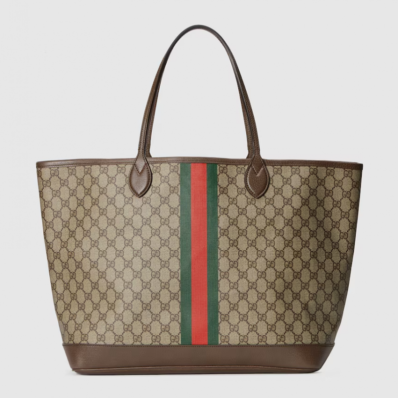 ベージュとエボニーのGGスプリームキャンバス、ブラウンレザーのトリム、レッドとグリーンのウェビング、コットンとリネンの裏地。内側:ハンドル付きジップロッククラッチ1個(高さ21cm)。重量:約0.76kg / 幅40cm x 高さ33cm x 奥行き19cm。イタリア製。最大収納容量:iPhone Pro Max/Plus、AirPods、長財布、口紅。