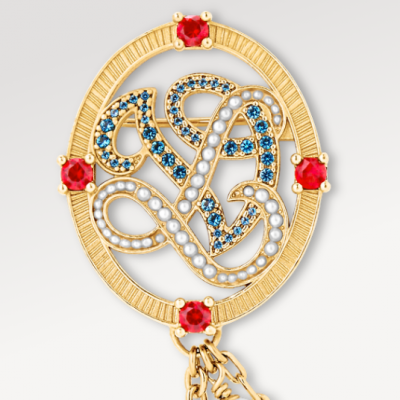 ルイ・ヴィトンの卓越した職人技で作り上げられた「LV ダイナスティ パールズ」ブローチは、ファレル・ウィリアムスがルイ・ヴィトンでデビューした際のダンディなスタイルを再現しています。絡み合う「L」と「V」の文字が今シーズンのテーマを際立たせ、きらめく複合キュービックジルコニアと光沢のあるビーズが組み合わさって、壮麗なエンブレムを創り出しています。