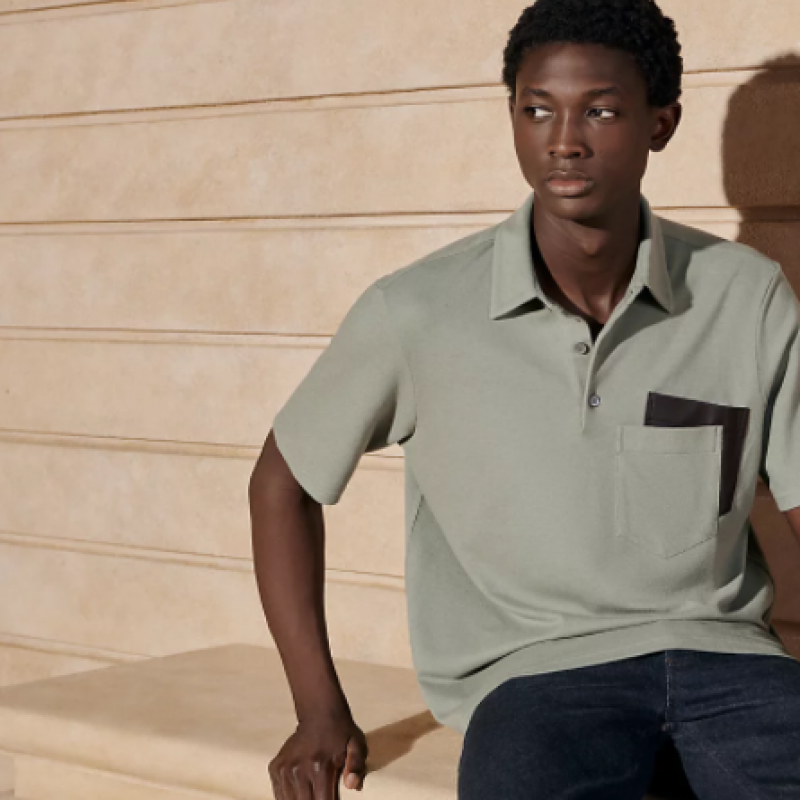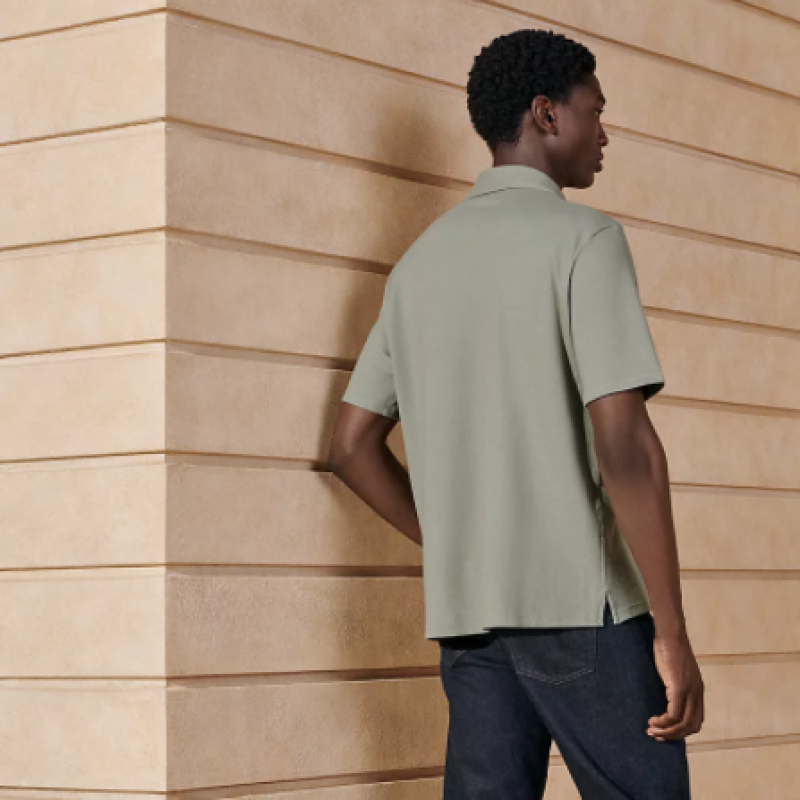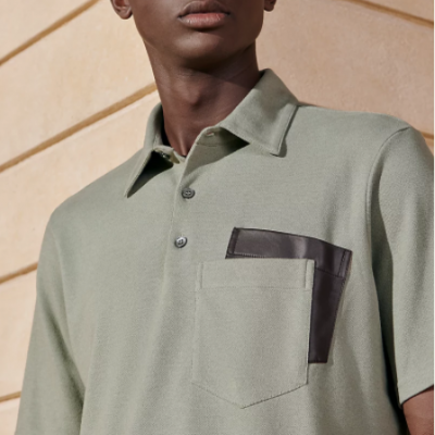 コットンとカシミヤ混紡(綿85%、カシミヤ15%)の半袖ポロシャツ。