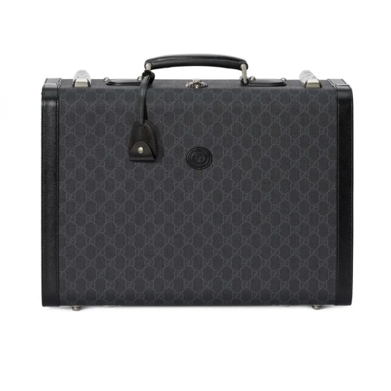 グッチの新作トラベルコレクションは、旅行用トランクの黄金時代である1900年代のデザイン要素からインスピレーションを得ています。このハードケースのトランクは、現代の旅行の隆盛を象徴し、短期旅行でも長期旅行でも、持ち物を常に携帯したいすべての人に最適です。このミディアムサイズのトランクは、ブラックのGGスプリームキャンバスで作られており、そのクラシックなシルエットはグッチならではの美的センスによって新たな息吹を吹き込まれています。